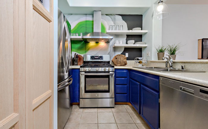 Глянцевые поверхности, например, нержавеющая сталь, полиуретановая и керамическая плитка, не только будут интересно смотреться на кухне, как элементы декора, но и, отражая свет, визуально расширят пространство.