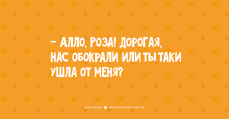— Алло, Фира? Я поссорилась с Абрамом! Он меня оскорбил! Он плюнул в кастрюлю с борщом! Он хлопнул дверью и сказал, что пойдет к продажным девкам! Фира, я умру! Он не у тебя?