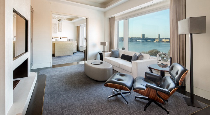 Также в апартаментах есть собственный спа-салон и парикмахерская, спортзал, сигарная комната, которая оборудована отдельной системой вентиляции, игровая комната (или лаундж-зона), 60-ти метровая гостиная и обеденный зал на 18 персон. Практически из всех комнат открывается шикарный вид на Гудзон.